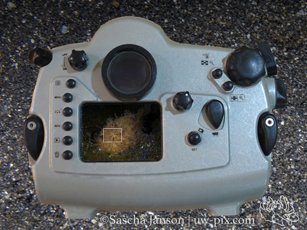 I used a Canon 7D in a Subal CD7 housing for this tutorial, so note that the buttons are in different positions on other housings. Newer DSLRs like the Canon 7D Mark II actually do a pretty good job with continuous auto focus, but for really small subjects, camouflaged subjects or when shooting at larger apertures the magnify button and manual focus are still essential.