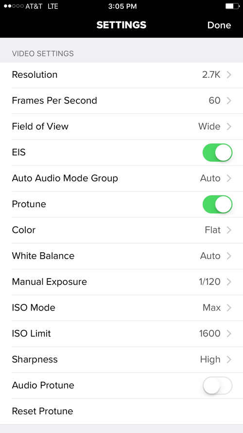 Protune: I shot with the Protune settings above, planning to post-process any clips before sharing them on social media.