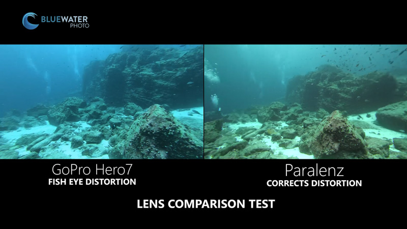 The rectilinear wide lens is probably the best choice for casual divers, but it can have its limitations. For one thing, because it’s a wide lens, it is a little more difficult to get good macro video than if you had a diopter on top. Macro is also limited by the camera’s minimum focusing distance, which is about two camera lengths. This can be remedied by taking close video at high resolution and cropping in post-production. That being said, the wide lens helps you get a lot closer to subjects, bringing out amazing colors and details in the footage. At 140 degrees, it captures a lot of what is in front of you. The lens on the Paralenz is rectilinear and not fisheye. This corrects the distortion typical of a fisheye lens.