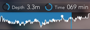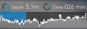 Our first reef shark dive was on a windy day that kept us away from dolphins north of Bimini, so we didn’t have excellent vis and were shooting through big shifts in light as clouds passed overhead. I took a COSMIQ dive computer down on the dive and later paired the log with my photos in the Deepblu dive log and social app (via bluetooth) to share the data you see below for each shot.