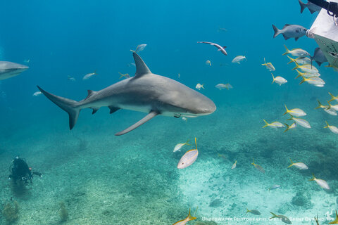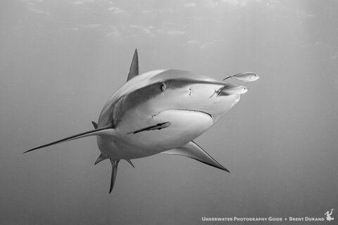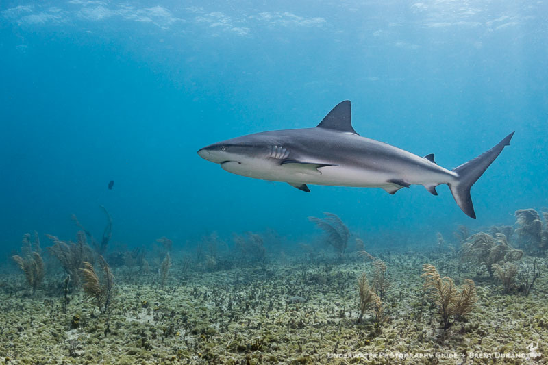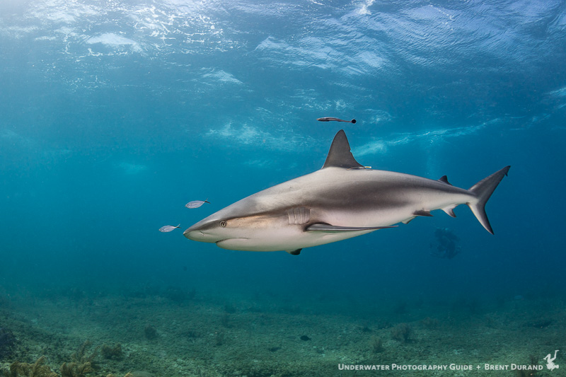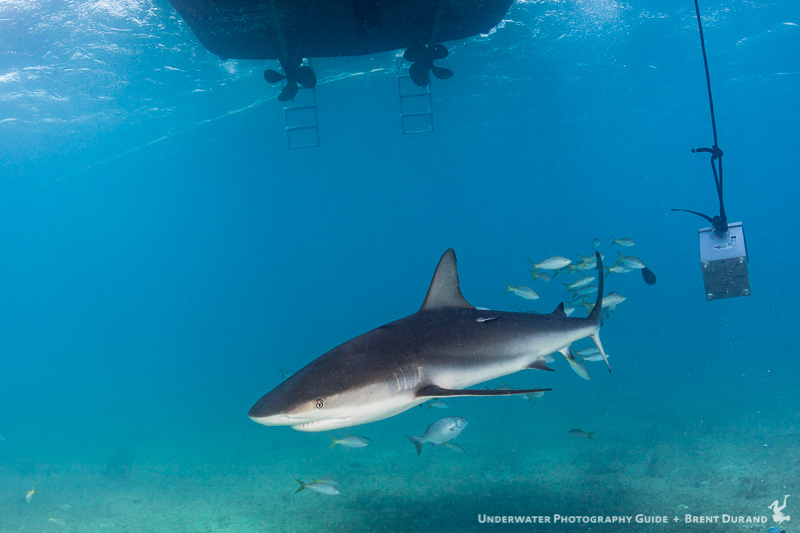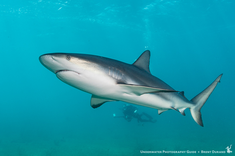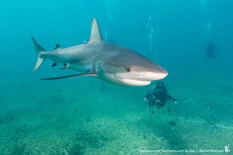 Shark diving is new to me. I’ve had some spine-tingling natural encounters with sharks while snorkeling and freediving, plus regular scuba encounters with whitetips and blacktips, but had never jumped in the water with reef sharks baited in via chum. Our Caribbean reef shark dives in Bimini, Bahamas during Bluewater Photo’s recent small group photo trip certainly changed that. Sure, these aren’t great whites or great hammerheads or tiger sharks, but they’re still very impressive and majestic fish capable of radical behavior changes.