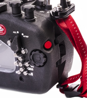 We have ergonomically placed the control dial at the rear of the housing so that it gives you quick and easy access to shutter speeds, aperture, white balance and the ISO of the camera. Additionally, at the rear of the housing, we have provided access to many of the camera’s functions. The controls can be easily reached by simply moving your thumb, thus allowing you to never have to remove your hand from the shutter lever. Primarily among these controls is the record button which has been given a large red oversized button for ease of use. For those that prefer a steady hold on the housing, the Aquatica grips and shutter extended trigger are available, allowing for a more traditional hold of the housing underwater.