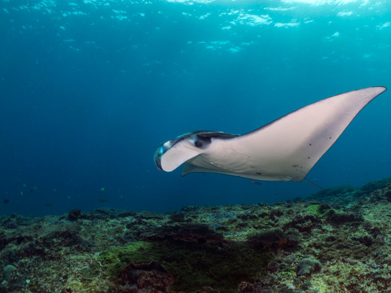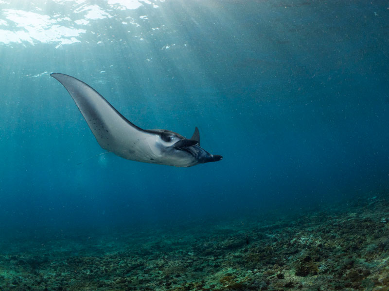 The downside is that when the Mantas do come it means the waters tend to be laden with plankton, which means visibility drops considerably. Keeping in mind the strong currents from the Lombok Strait that Nusa Penida is notorious for, sometimes with fatal consequences, the waters in the bay are prone to surges, so divers need to keep up awareness when diving at Manta Feeding Point.