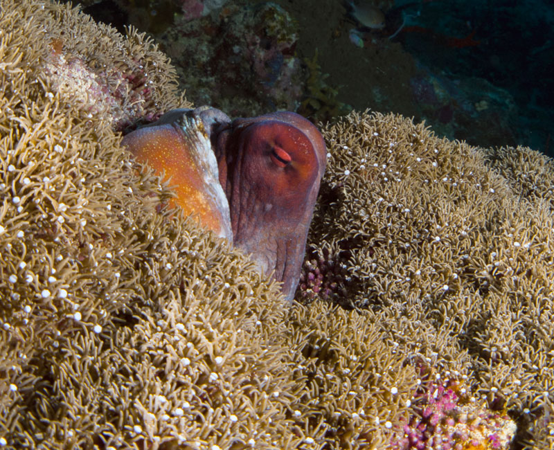 Many places for subjects to hide. Taken with 2 Sea & Sea ys-110a at ISO80. Manual mode at f8 and 1/160s. Dyron 8mm fisheye