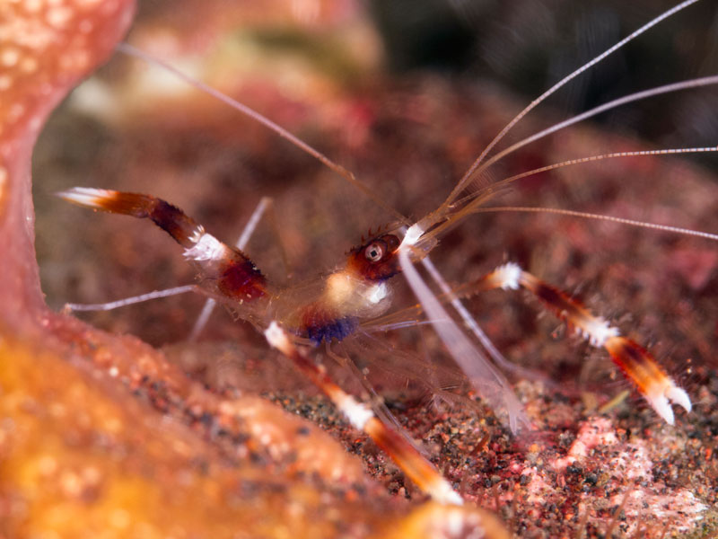 Banded Cleaner Shrimp. Taken with 2 Sea & Sea ys-110a at ISO80. Manual mode at f8 and 1/250s. Subsee +10 diopter