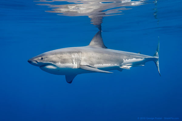 When the sharks are just below the surface, you can sometimes get an interesting reflection above the shark, depending on the light and surface conditions.