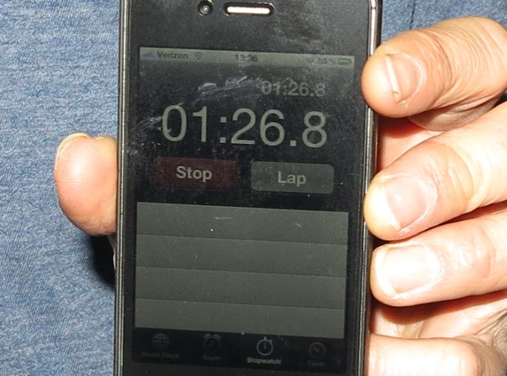 For our auto-focus tests, we tested the G1X against the Canon G12, and a few mirrorless cameras, in low-light conditions. The shutter was pressed on 2 cameras at the exact same time, without pre-focusing the camera. We did 4 tests at 4 different focusing distances - taking a photo of a stopwatch running on an iPhone. Results are cropped.