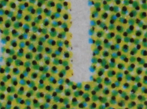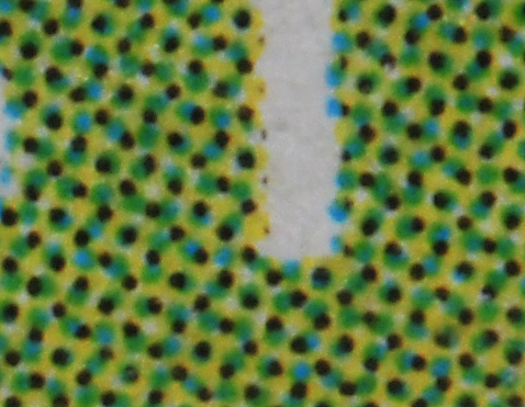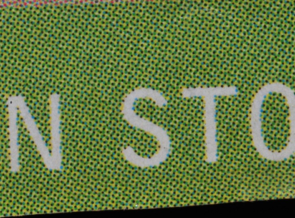 I chose a flat subject (a postcard) with an extremely fine pattern, almost impossible to see with the naked eye, so that any diffraction effects would be very obvious.