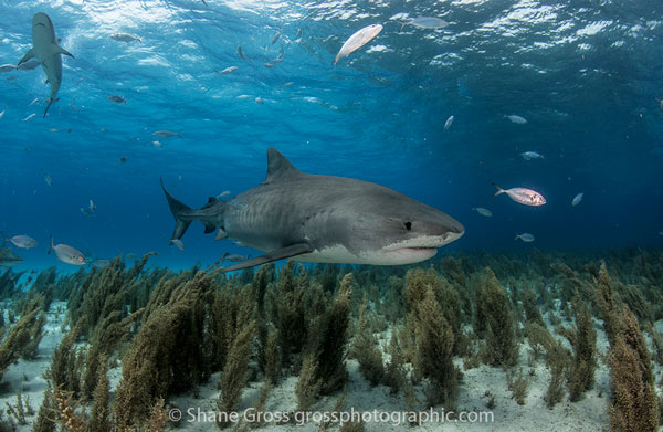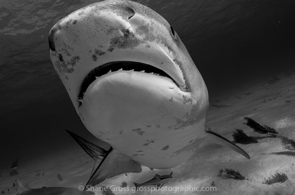If you want to dive with and/or photograph tiger sharks you go to Tiger Beach. The small, shallow sand flat, an hour by boat from the West End of Grand Bahama Island, is the most reliable, consistent and, arguably, photographically pleasing spot to photograph these striped beauties on Earth. As such, many photographers have been there and shot it in many different ways. I had avoided going there for this very reason. I thought to myself “what could I possibly do different? It’s been shot to death!”