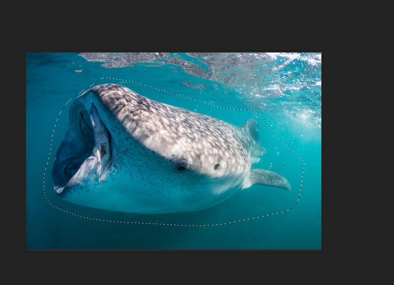 Second, I moved the entire whale shark to the right, giving it more swim space into the frame (a fundamental composition technique I discuss in photo seminars). Now you just have to click FILE -> SAVE AS and save the file as a .jpg to share on Facebook.