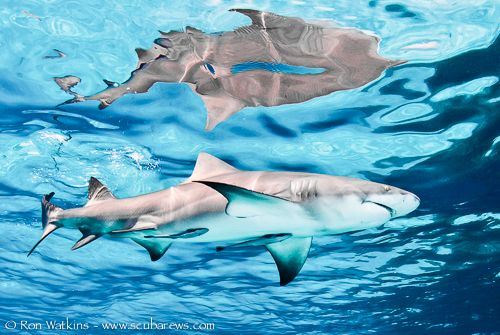 A lemon shark reflects on the surface. Photo: Ron Watkins