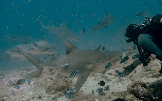 Bull sharks patrol the waters of Beqa Lagoon. Photo: Carolyn Wang