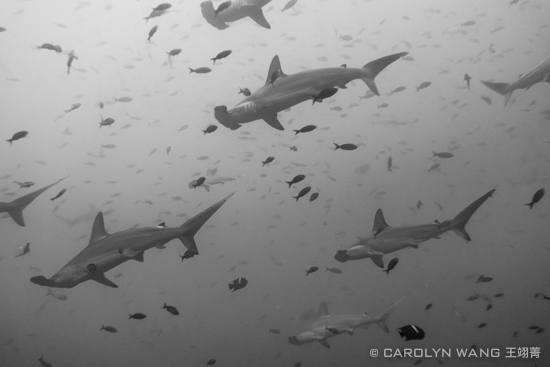 Schooling hammerheads make a close pass. Photo: Carolyn Wang