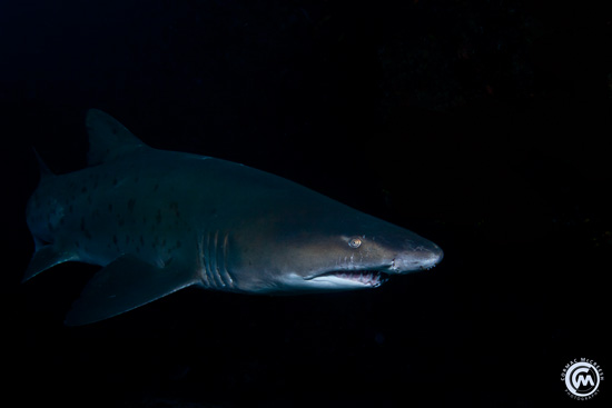 Ragged tooth (sand tiger) shark, taken at Raggie Cave. Photo: Cormac McCreesh