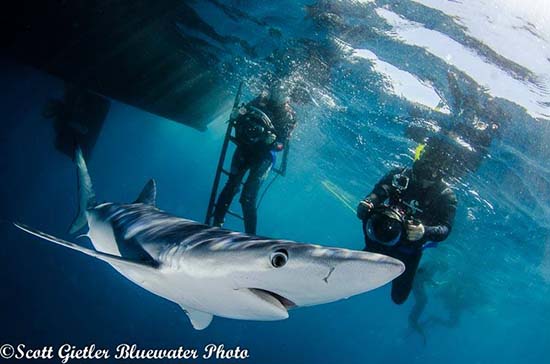 Our 11th shark dive destination is off the radar for many but host to some surprisingly good dives. Bluewater Photo runs annual blue and mako shark dives every spring. Some days may have one shark while others may have 10+, with close open water encounters. You never know what will show up, and on one day in 2013 a salmon shark cruised up to the boat, which is very rare. Check out some photos on the Bluewater Photo Facebook page.