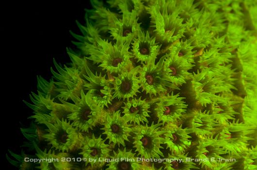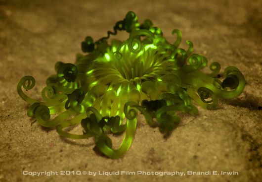 Liquid Film Photography is currently based in New York City and Chicago. Not only do they specialize in shooting fluorescent marine life, Brandi Irwin also shoots models and fashion underwater, bands, and product studio/stock photography underwater. Brandi has an exhibit opening at the New York Aquarium August 5th running until August 31st, 2011, followed by an exhibit at the Oklahoma Aquarium. More of Brandi's underwater photography can be seen at LiquidFilmPhotography.com.