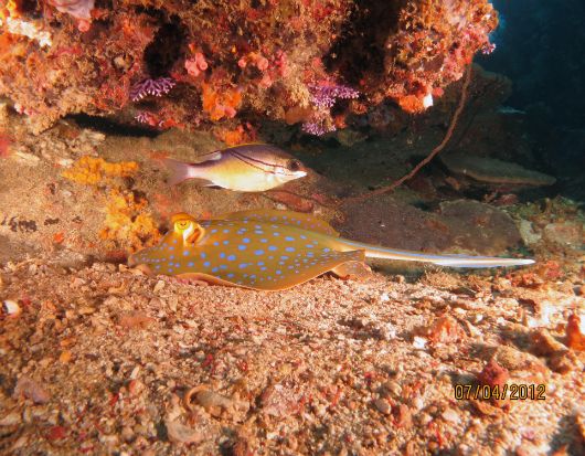 Blue spotted stingray. Shot with manual mode at f8 and 1/100s. ISO at 80.