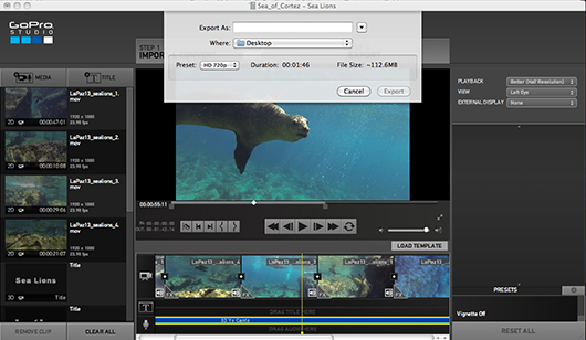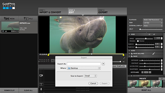 This completely changed once I tried the free GoPro Studio Edit Software. I was blown away after learning to use the software and putting together a video in 45 minutes. Next I put together a short timelapse to share on Instagram, which took about 5 minutes. This article is presented with the hope that more “closet video shooters” will be encouraged to start creating and sharing their own underwater videos.