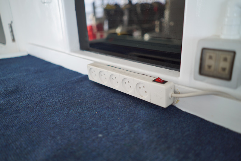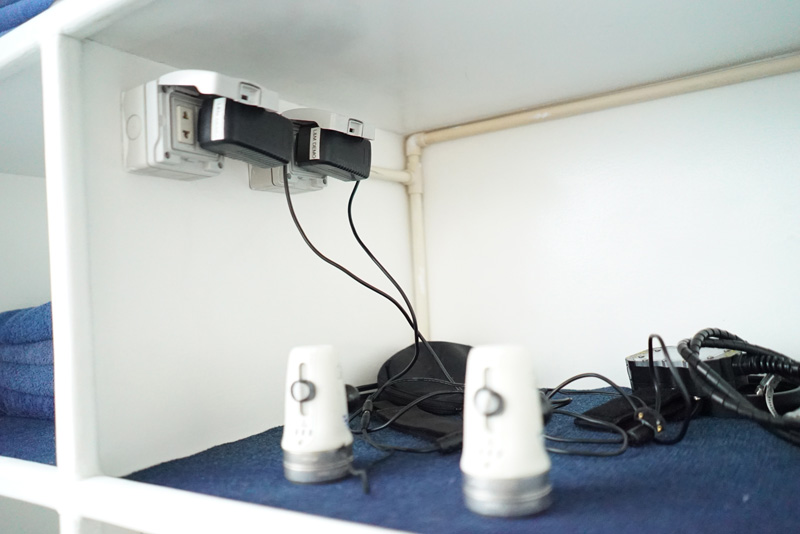 These charging stations are built right on the dive deck so that divers can get their batteries charging without having to change out of their wetsuits to enter dry areas during surface intervals. Air blowers are readily available for drying camera rigs before opening them up. Each station has plenty of chargers – enough for all the lights, strobes and camera batteries we travel with.