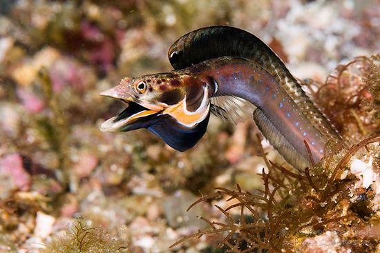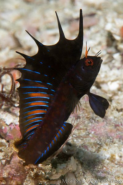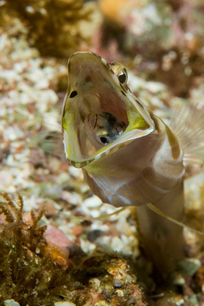 Orangethroated Pikeblenny. I prefer to shoot a 105mm for most animal behavior shots. The images may require a little more cropping but the trade-off is significant for the long range (2 or more feet) for natural behavioral images and subjects like Pikeblennies.