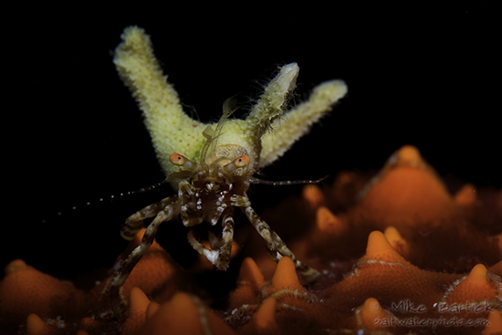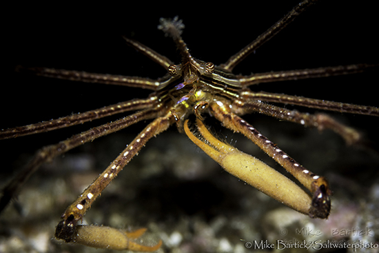 The interesting spider-like Panamic Arrow Crabs are abundant in the Midriff islands and can be found on almost any dive. Snooting my strobe, I tried to create a bit or symmetry in this image. Snoots are easy to carry and use almost anytime and can easily add a different dimension to your trip collection.