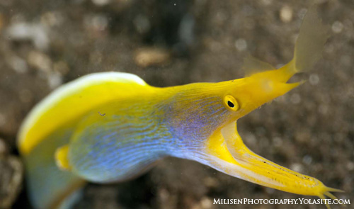 In addition to its wide-angle opportunities, Dumaguete is known as a center for world-class muck diving. After visiting a show-stopper such as Apo Island, you would be forgiven for looking at a substrate of volcanic silt and being a bit disenchanted at first. The seemingly endless desert landscape starts at the beach and continues down the slope as far as you care to follow it. Miles of sand might be considered comparatively boring if not for the armies of cryptic life forms endlessly parading by your dive mask. The diversity of the coral triangle doesn’t only apply to corals.
