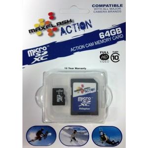 GoPro recommends using a Class 10 memory card (or better). For underwater video, we recommend a card with minimum of 32GB, so that you can record video all day (with normal recording) without changing cards. We recommend 64GB of memory. The Max-Flash Micro SD cards come with a SD Card mount so that you can insert the card into your computer or card reader.