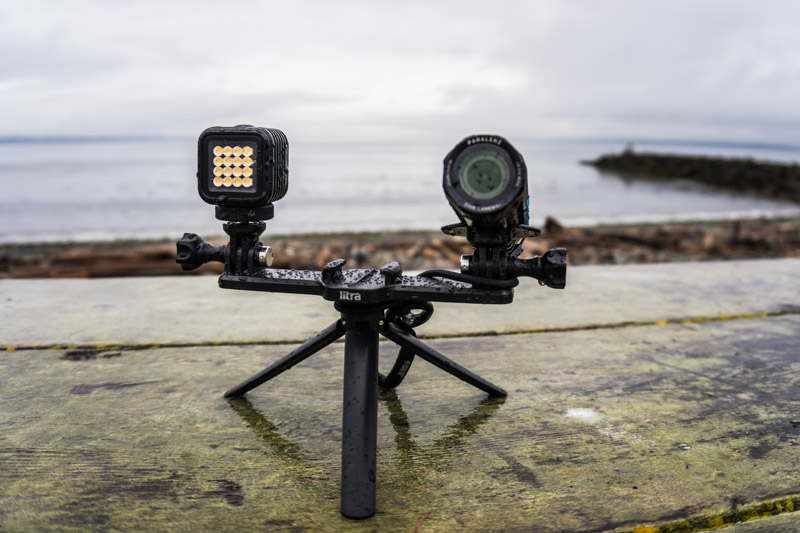 Taking a look at all my mounting options with the LitraTorch, I was reminded of another company that put a lot of R&D into designing their mounts – Paralenz. Paralenz makes a compact action camera made specifically for divers, and it fit perfectly with all of the mounts Litra had to offer. Ironically, the Paralenz looks and operates jut like a flashlight and the Litra lights look like a camera. These two devices made a great pair with mounting system Litra has to offer. I was able to develop a small, versatile system that could clip to my BC and didn’t weigh more than a couple pounds. I could take it along anytime I was working on other underwater projects, leave the tripod set up to take a timelapse, and come back to collect it at the end of my dive.