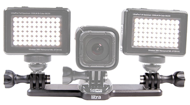 The Litra triple mount is my favorite mount for using a litra light in conjunction with an underwater action camera like the Paralenz Dive Camera or the GoPro Hero7. It’s longer than the double mount which means you can put more space between your light and camera, reducing backscatter. In this case, I took the LitraTorch 2.0, and mounted it on one end while mounting the Paralenz on the other. If you’re shooting in clear, tropical water with less backscatter that needs more artificial light, then I recommend using two lights on either side of the camera.