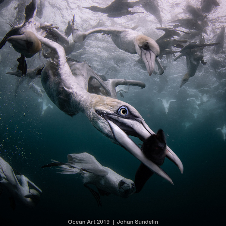 The Story: Underwater at only about 6 m depth I suddenly heard the sound of jungle drums. Surprised and confused I first looked up towards the boat to see if they were banging for me to go up but they were not. I was then thrilled to realize that the sound was from Gannet after Gannet diving to catch fish.
