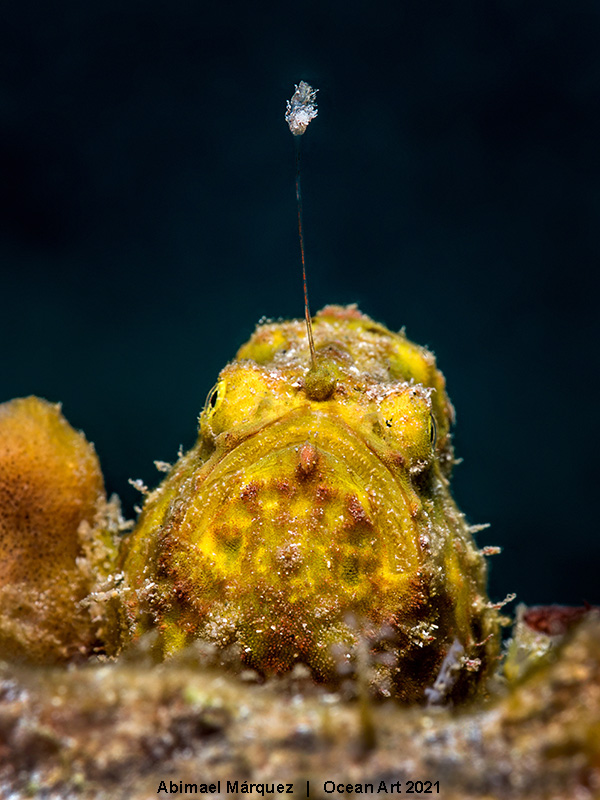 The Story: I knew that he had seen a frogfish in the area, but he did not find it where he informed us so he decided to extend the search, he had moved, my partner had already lost hope of finding it, I was sure he would find it, after 20 minutes of searching what was found next to a yellow sponge trying to go unnoticed, he proceeded to make the corresponding definitions and take several photographs of it.