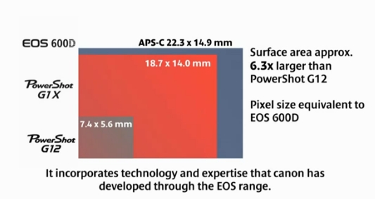• The new 1.5" sensor is six times larger than Canon's latest G12 model.