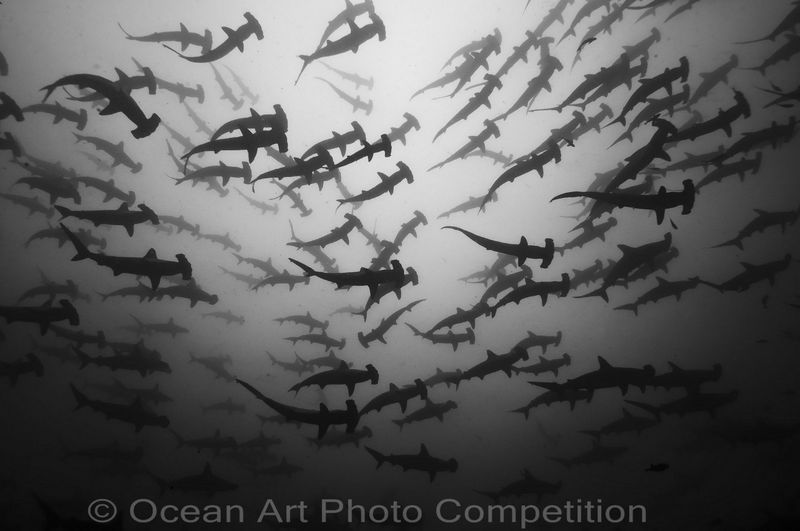 Schooling Hammerhead sharks at Cocos Island, Costa Rica. Photo: Edwar Herreno