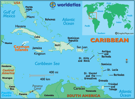 Located ~275 miles south of Cuba in the Caribbean Sea and a short 90 minute flight from Miami, Grand Cayman is the largest of the three Cayman Islands. The other two Cayman Islands, Little Cayman and Cayman Brac, are ~85 miles northeast of Grand Cayman.