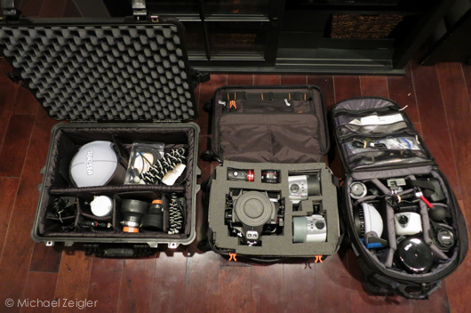 This represents basically every piece of underwater photo gear I own. The Pelican box on the left contained my large dome along with my snoots and "extras," and I checked that bag. The other two pieces were my carry-ons, and everything arrived unscathed. I highly recommend that you insure your gear, which, if you use DAN insurance, protects you from theft and an accidental flood.