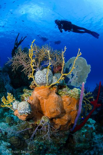 Colorful bouquets of sponges can be found at most of the dive sites along Grand Cayman's famous Seven Mile Beach.