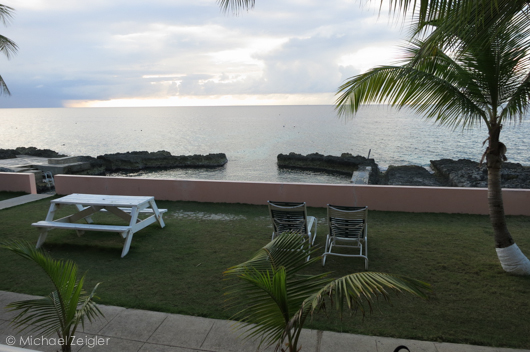 The view from our room at Sunset House. On the left you can see one of the entry/ exit ladders to the house reef. It was a great place to relax and enjoy the sunsets.