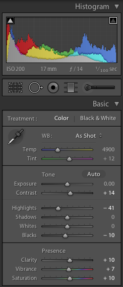 Clarity: Bumping up the clarity a bit helps enhance the detail in the image.