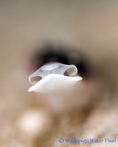 One potential downside is that the holes they reside in tend to be “flat” in nature, which may lead to a distracting background. This is where the Blenny’s friendliness can come in handy. If you find the Yellow Tail Blenny to close to the entrance of its hole, retreat a little, stay still and soon it may extend itself out of the hole and towards you! One can then move slowly closer to frame the Blenny and blur the background more. The transparent rims of its eyes form an integral part of the image, thus for best results try to focus on the rims and not the round black pupil.