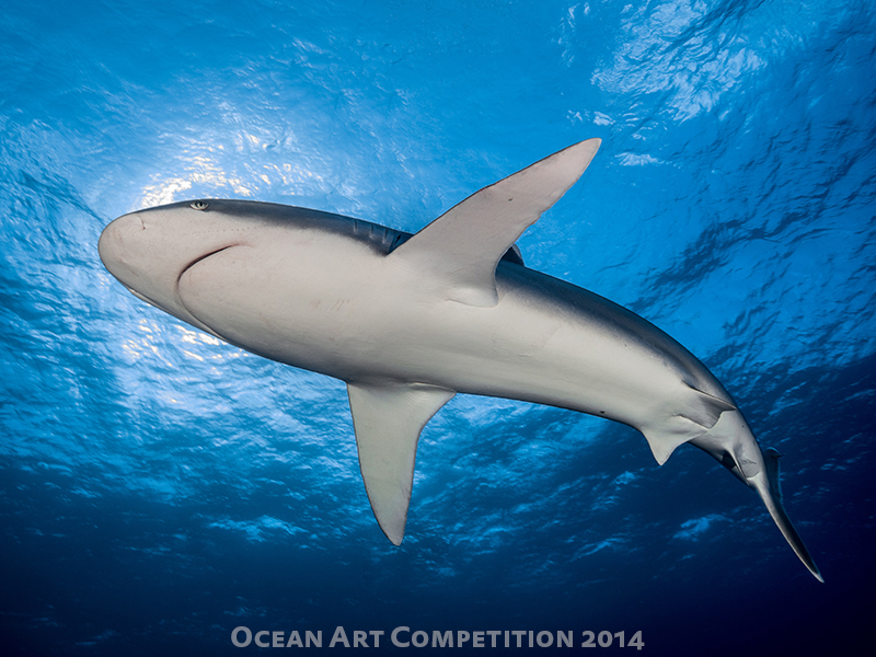 The story: We had 3 large female silvertip sharks along with 3-4 grey sharks with us during the dive, down at about 60 fsw. Visibility was great, and I knew I wanted to try to get a shot with the sun behind the shark while still lighting the details of its white underbelly. This was going to be a mixture of technique, patience, and some luck that the shark would pass close enough to me for the shot. I stayed down near the reef, watching the pathways the sharks were swimming in to position myself accordingly, and I also did multiple test shots to ensure my camera and strobe settings were correct before trying to get the final shot. As the silvertip approached, I was very still, and controlled my breathing so as to not send a stream of bubbles up when the shark neared. It passed about 6 feet over my head for this shot.
