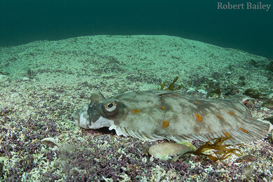 South of Yell, we did a drift dive on a site called Burra Ness. The sea bed was reminiscent of a wind-swept desert. We found ourselves flying over furrows of maerl beds and coarse white sand watching armies of hermit crabs battle away. It was an uneventful dive for me up until I drifted upon the largest plaice I have ever seen. I managed to make a few pictures before it moved on, and then we drifted with the current slowly back to the surface.