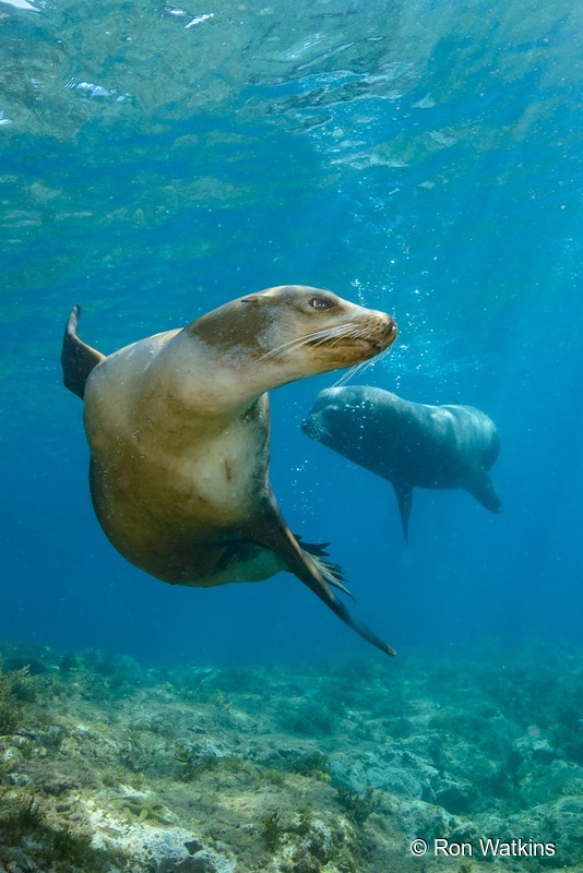 A trip to the Sea of Cortez wouldn’t be complete without visiting some of the local sea lions. The infinite energy and curiosity of these sea lions make an encounter entertaining and fun to photograph. It is easy to spend hours watching them speed through the water, zipping around divers, swimming loops, blowing bubbles, and causing an endless ruckus. Though sea lion dives yield endless fun, be wary of the large, territorial bulls! Perhaps the best locations to see these animals are the rookeries in the Midriff Islands and the Baja Peninsula.