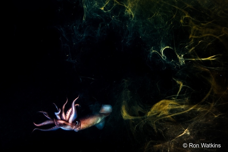Humboldt squid are renowned for their aggressive behavior and relatively large size – with mantle lengths reaching 4-5 ft (not including tentacles). Though they live in deep water during the day, Humboldt squid migrate to shallower depths to feed at night. Some liveaboards will attempt to lure them to the surface for closer view using deep-water jigs and lights. Because of their aggressive behavior, you can’t get in the water to photograph them, but you can lean over the side of the boat or use a pole cam.