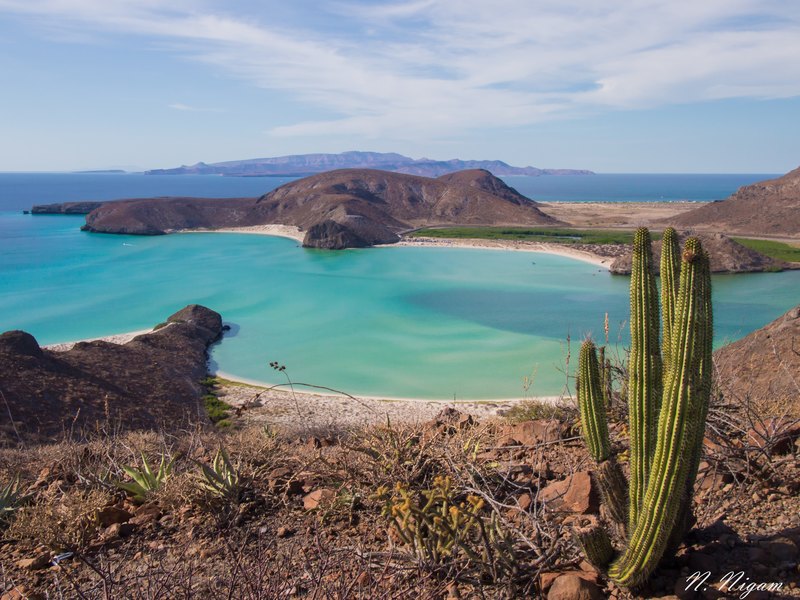 The Sea of Cortez is surrounded by Mexico – a country with beautiful and unique terrain. The Baja Peninsula is home to a desert with characteristically large cacti, ranchers with donkeys, and rugged hills. Where the desert descends into the sea, there are beautiful sandy beaches with clear turquoise water – a nice contrast to the arid landscape above. There are many opportunities to hike in search of ocean views and many secluded beaches that can be had all to yourself.