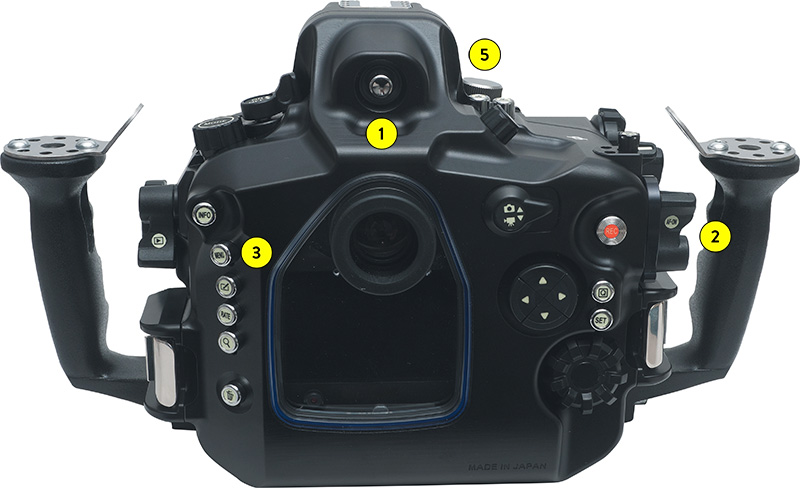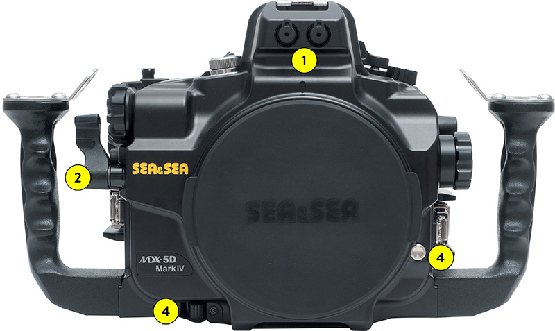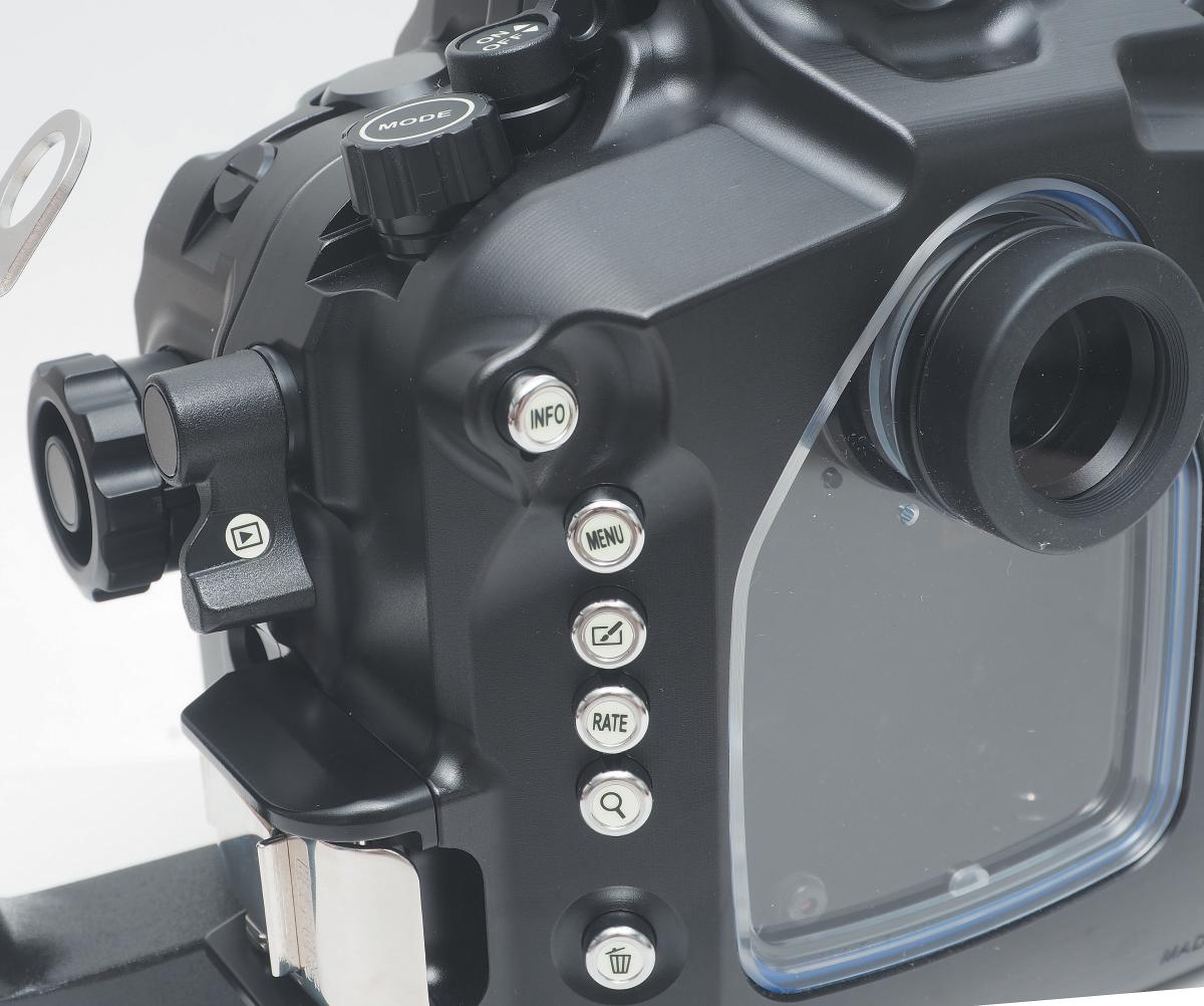 Both conveniently switch lenses and ports between dives without removing the housing back. Activate the Port Lock on the front of housing and push the Lens Release for quick and easy lens swap.