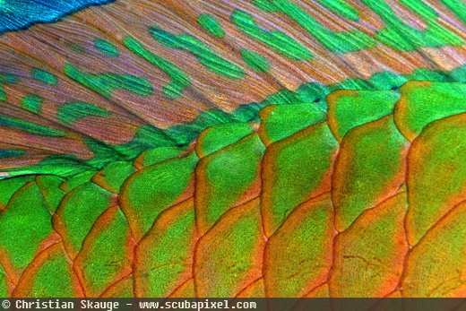 As with any kind of underwater images, first you need to find what you want to photograph. I often find beautiful patterns in fish, especially around the eyes or in the scales themselves. Parrotfish is a dead giveaway when talking about fish patterns, but many other species are worth a closer look too.