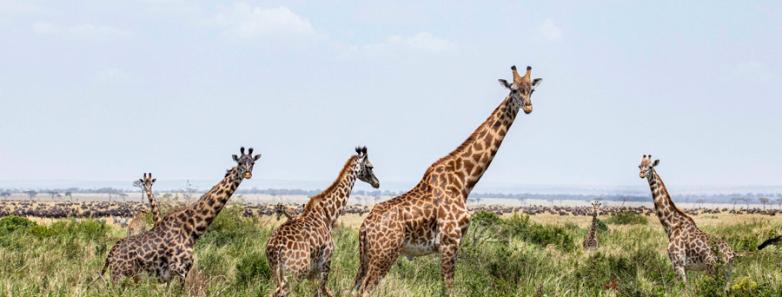 - The Serengeti together with Kenya’s Masai Mara Game Park forms Africa’s most famous wildlife park. The image of acacia trees on an endless grass plain epitomizes Africa for many, and then add a Masai warrior and some cattle to the picture and the conversation needs to go no further. The annual wildebeest migration through the Serengeti and the Masai Mara is the largest mass movement of land mammals on the planet – with more than a million animals following the rains. But that is not where the game viewing ends; large prides of lions, elephants, and giraffes in grasslands, gazelles, and eland to mention but a few. Aside from traditional vehicle safaris, hot-air ballooning over the Serengeti plains has become almost essential and you can even do a horseback safari.