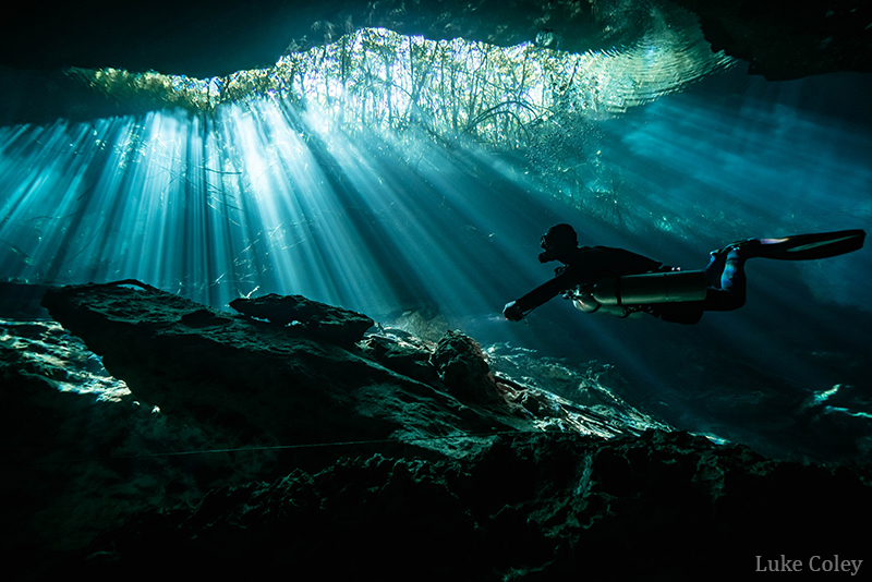 Editors Note: “Luke Coley is a very accomplished cenote photographer who is able to manipulate the way light moves in overhead environments to his advantage. We are honored to feature his work on the Underwater Photography Guide. Please see more of his work at www.lukecoleyphotography.com.”