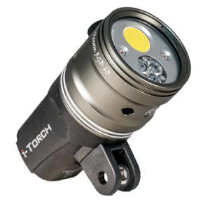 The Venom 60 RGB underwater vide light features a 6000 lumen beam with a multicolored RGB spotlight for artistic pursuits