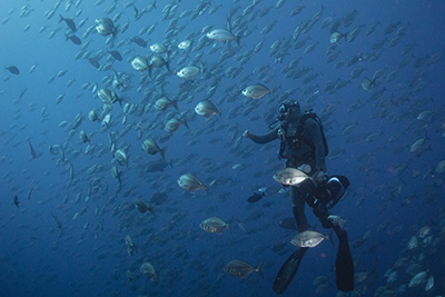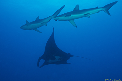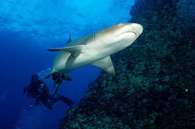 Socorro is one of those magical underwater places like Galapagos, Malpelo, and Cocos Island. It is a premier big animal destination and one of the few places on earth where divers can easily interact with dozens of sharks on every dive – without the use of bait. There are three islands that are typically visited on a Socorro trip: San Benedicto, Socorro and Roca Partida.